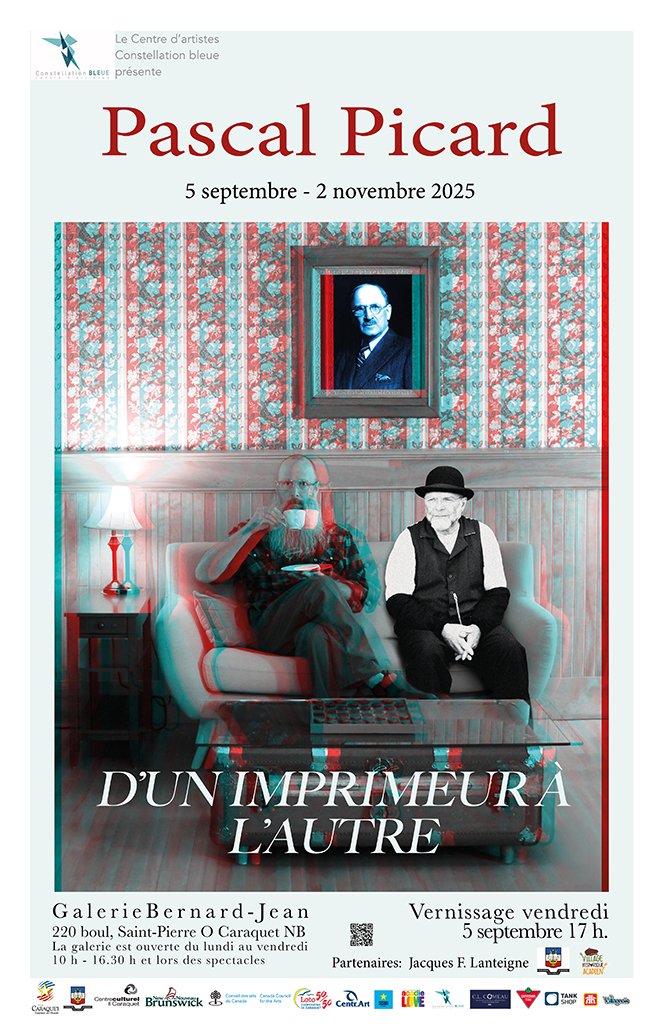 Exposition D’un imprimeur à l’autre, Galerie d’art Bernard-Jean, Caraquet, septembre, 2025