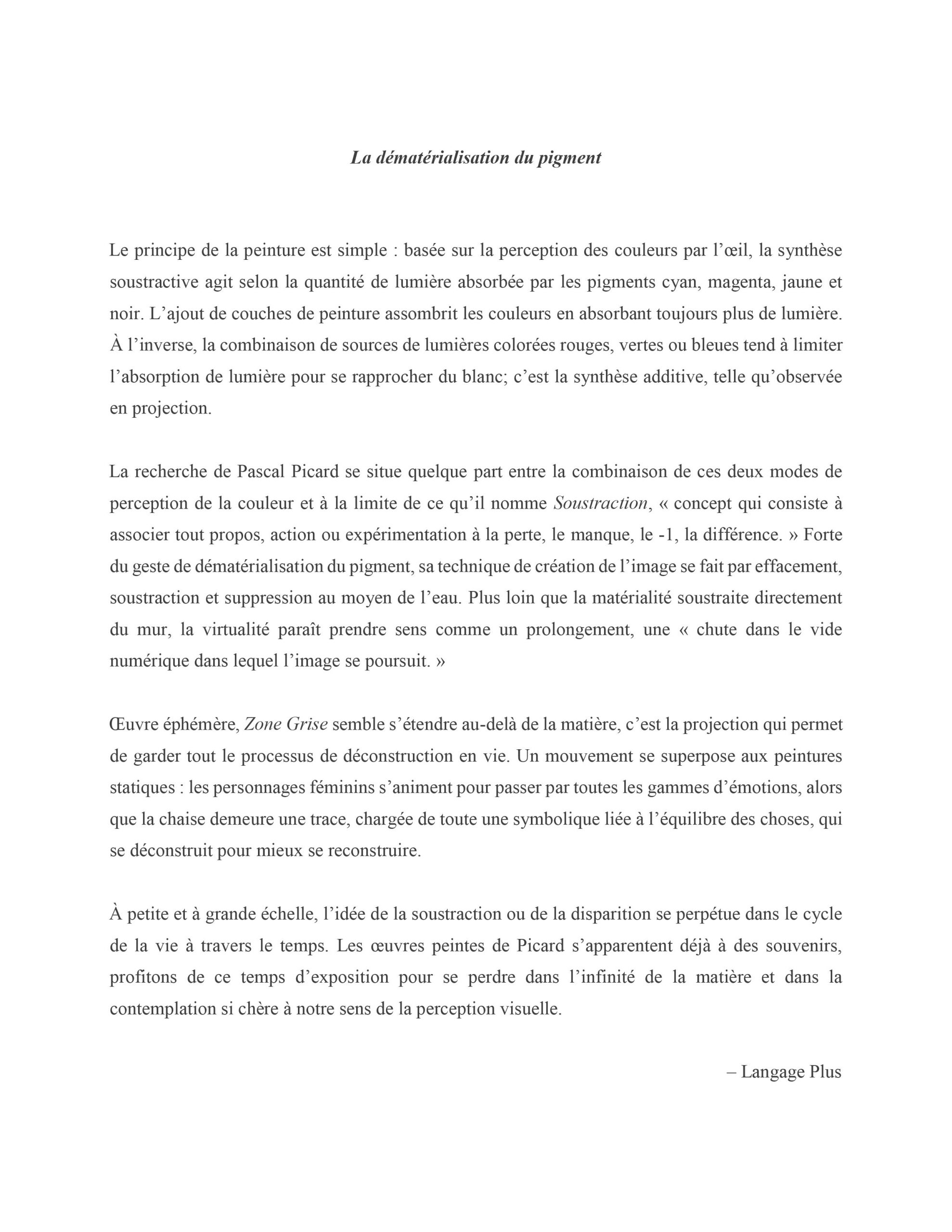 Explications des œuvres Zone Grise part I et II, par l’artiste lors du vernissage d’Espaces pigmentés: