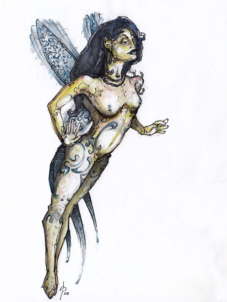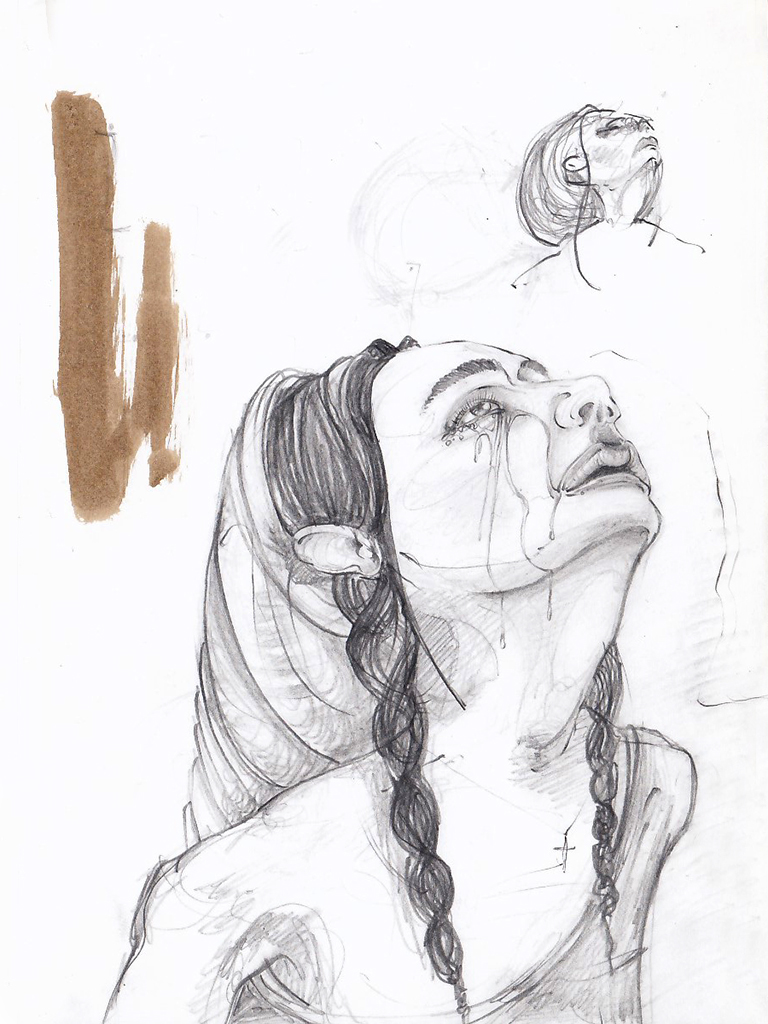 Graphite, aquarelle et encre sur papier Bond, 20 X 15 cm