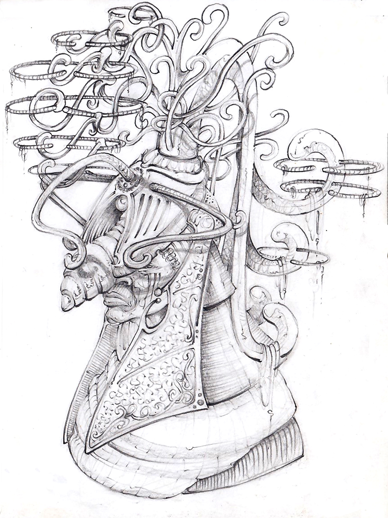 Graphite et encre sur papier Bond, 28 X 22 cm