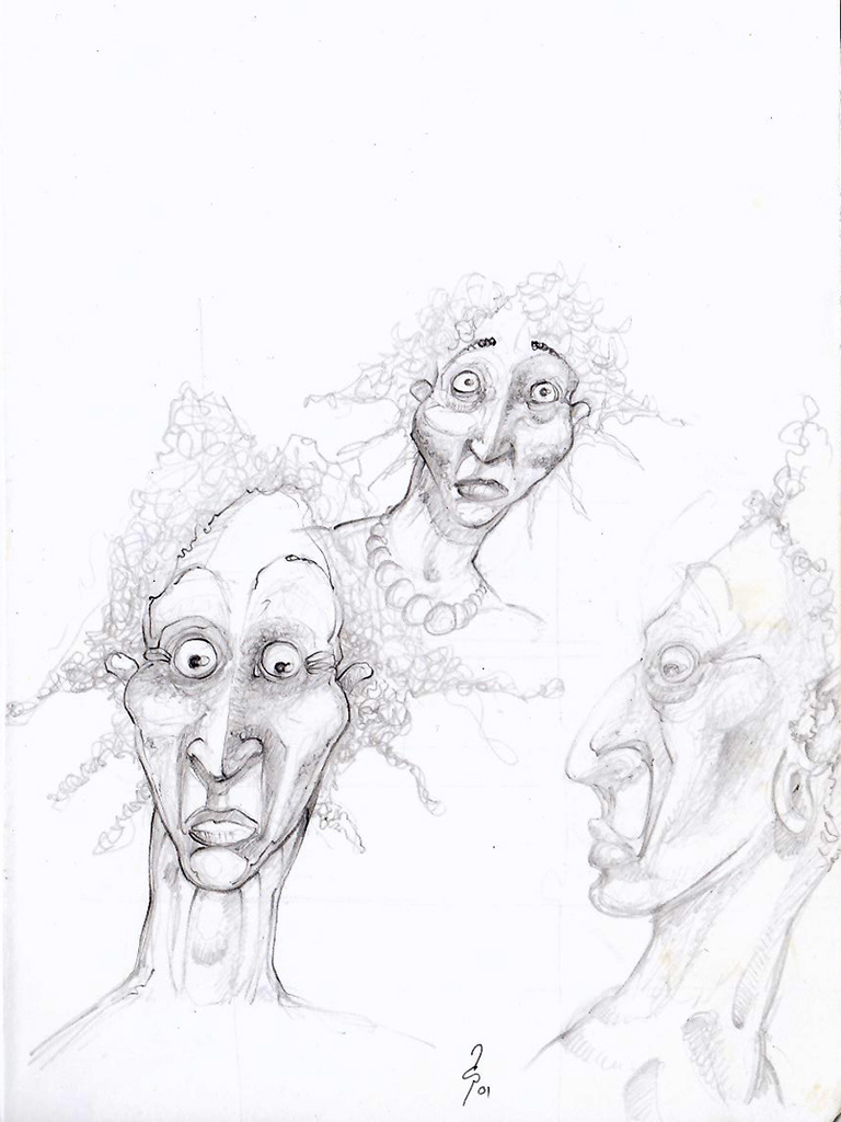 Graphite, crayons couleurs et stylo bille sur papier Bond, 20 X 15 cm