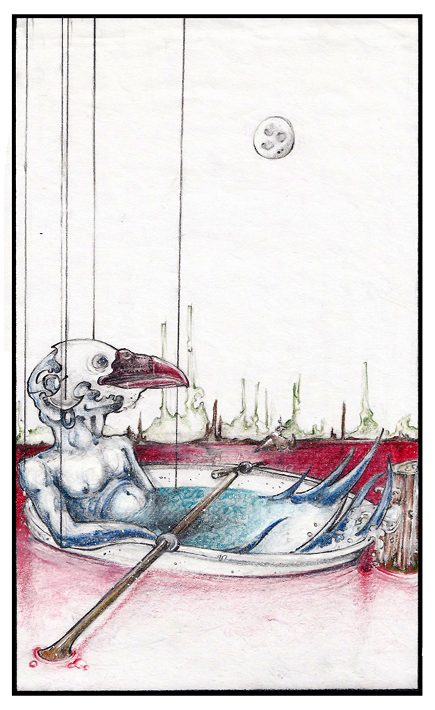 Crayon de couleur, aquarelle et encre sur papier Bond, 15 X 20 cm