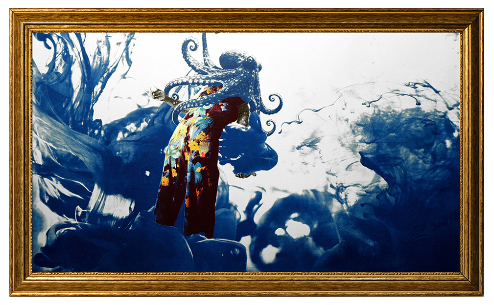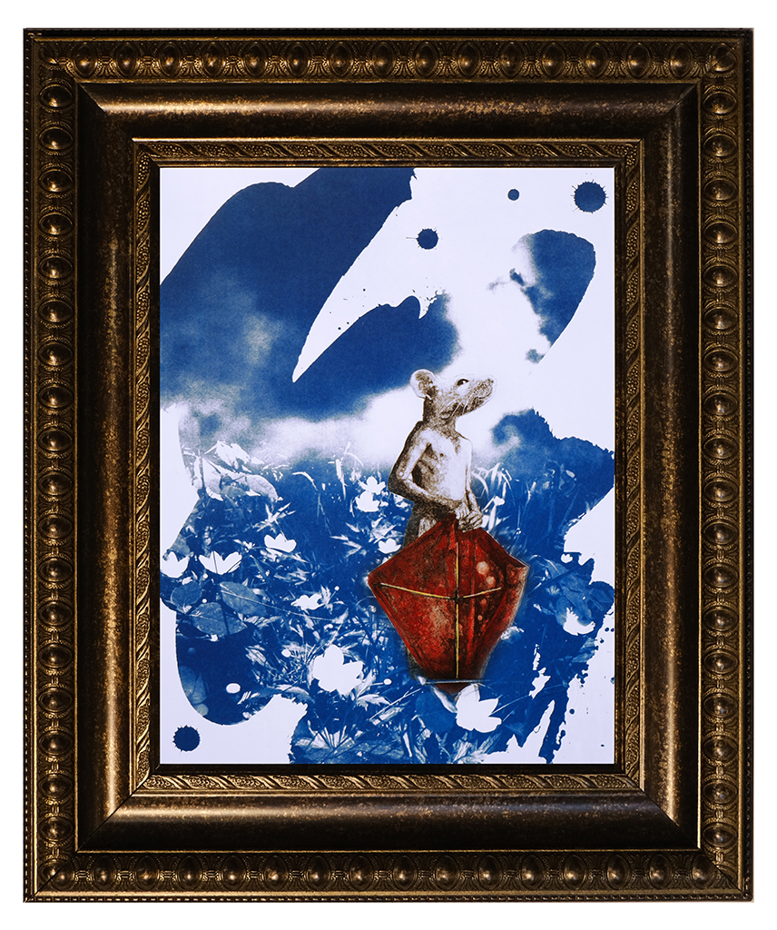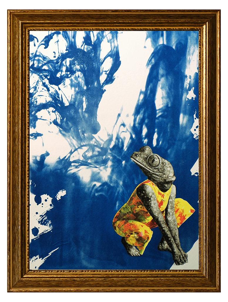 Sérigraphie quadrichromique, cyanotype et peinture soustractive sur papier Fabriano, YY X ZZ, cm